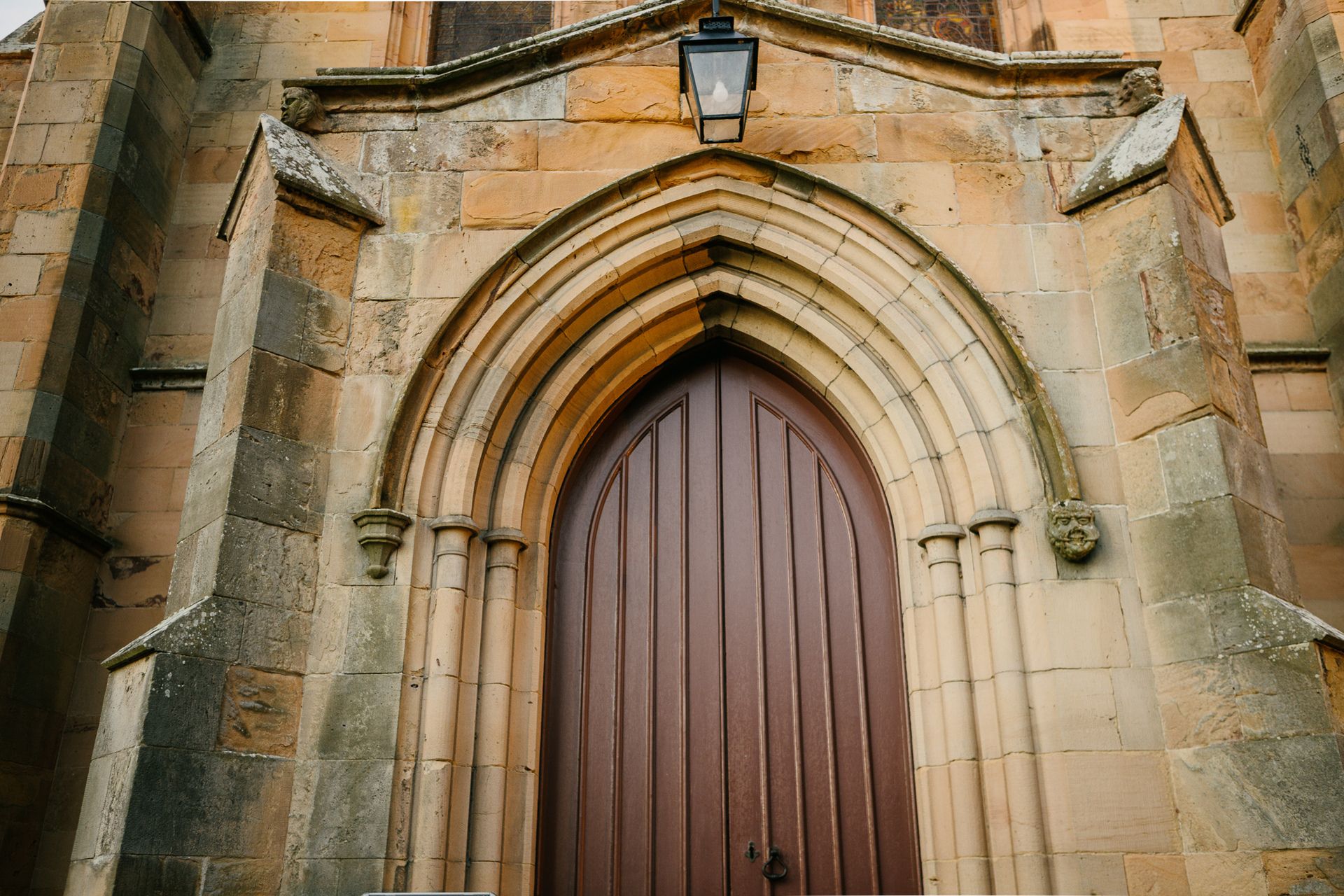 Clubhouse door design inspired by Dornoch Cathedral, home to the first record of golf in the town when discovered in parish documents